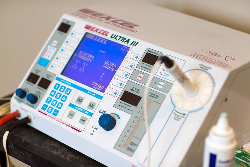 The ultrasonic waves are generated by what’s known as a “piezoelectric effect”, caused by the vibration of crystals within the head of the ultrasound wand/probe. These sound waves pass through the skin and cause a vibration of the local tissues, thereby creating a deep heating locally (although often no sensation of heat will be felt by the patient). In situations where a heating effect is not desirable, such as a new injury with acute inflammation, the ultrasound can be pulsed rather than continuously transmitted.